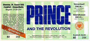 • Some tickets for a show in Frankfurt have a date of 27 August 1986. These tickets were long thought to have been for a second Frankfurt show on the 28th, but there are no facts to support there was a second show played in Frankfurt. In fact it seems tickets were printed only anticipating a second show that never materialized.